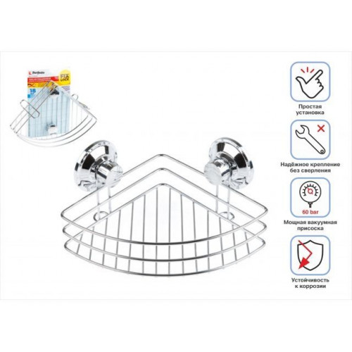 Полка для принадлежностей на вакуумных присосках, угловая, хром. сталь, FIX LOCK, PERFECTO LINEA