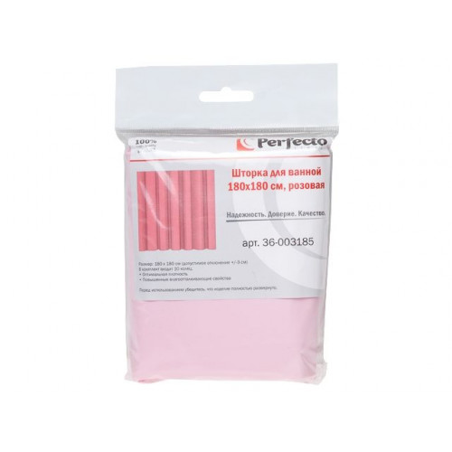 Шторка для ванной (10 колец в комплекте), 180х180 см, розовая, PERFECTO LINEA