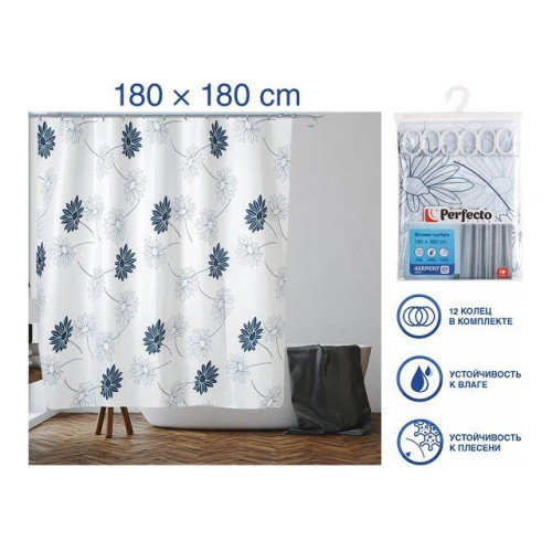 Шторка для ванной (12 колец в комплекте), 180x180 см, Harmony, цветы, PERFECTO LINEA