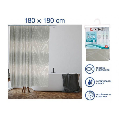 Шторка для ванной (12 колец в комплекте), 180x180 см, Secret, жемчужная, PERFECTO LINEA
