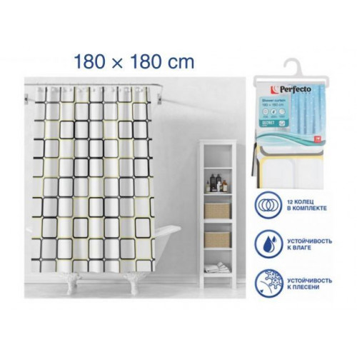 Шторка для ванной (12 колец в комплекте), 180x180 см, Secret, графика, PERFECTO LINEA