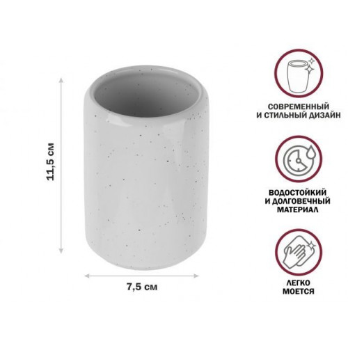 Превосходный внешний вид - стакан из керамики создает роскошный и стильный акцент в ванной комнате, добавляя нотку изыска и элегантности к общему дизайну. Прочный и долговечный материал - керамическая конструкция гарантирует долговечность стакана, не подверженного повреждениям или царапинам в результате ежедневного использования.