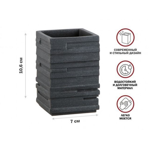 Стакан для зубных щеток WEATHERED SAND, черный, PERFECTO LINEA
