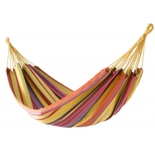 Подвесной гамак - это гарантия отличного времяпровождения на свежем воздухе. В тканевом гамаке можно уютно расположиться с любимой книгой в руках, спрятаться от жары в тени деревьев и подремать. А яркая расцветка поспособствуют отличному летнему настроению.