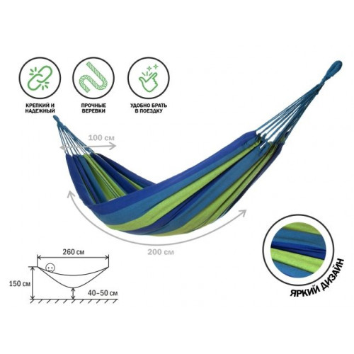 Подвесной гамак - это гарантия отличного времяпровождения на свежем воздухе. В тканевом гамаке можно уютно расположиться с любимой книгой в руках, спрятаться от жары в тени деревьев и подремать. А яркая расцветка поспособствуют отличному летнему настроению.