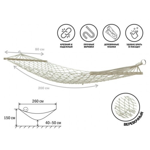 Гамак подвесной с брусками, 200х80 см, веревочный, Garden (Гарден), ARIZONE