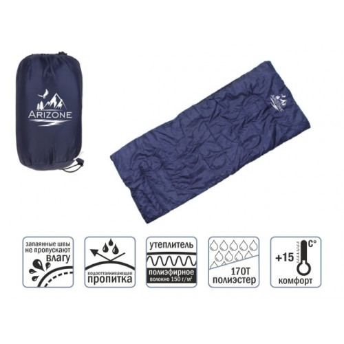 Наружный и внутренний материал спального мешка: полиэстер 170Т, утеплен полиэфирным волокном плотностью 150 гм. Запаянные швы спального мешка не пропускают влагу.