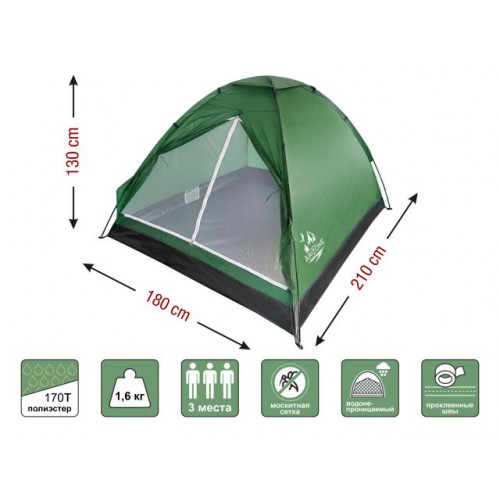Палатка Coyote-3 - универсальная трехместная палатка с одним входом и противомоскитной сеткой. Благодаря проклеенным швам палатка надежно защищена от попадания влаги. Устойчива к ультрафиолетовому излучению.