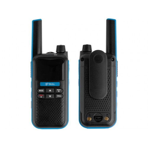 Радиостанция BULL это портативное устройство, позволяющие обмениваться голосовыми сообщениями на расстоянии при помощи радиоволн, что подразумевает автономию от зоны обслуживания, т.е. в местах, которые не входят в зону покрытия сотовой связи. Радиостанция защищена от непогоды и позволяет выдерживать неблагоприятные погодные условия. Удобный цифровой дисплей позволит с легкостью настроить радиостанцию под необходимые нужды. Обладает встроенным светодиодным фонариком. Дальность связи достигает 10 км на открытой и до 1,5 км по пересеченной местности. Модель обладает 16 каналами и 155 субкодами (CTCSS/ DCS)*. Время работы радиостанций достигает 27 часов активного использования. Радиостанция поставляется со съемной литий-ионной батареей повышенной ёмкости (3,7 В / 1800 мАч), а также совместима со стандартными батареями типоразмера АА. Зарядка Micro-USB (входит в комплект изделия). Модель также имеет разъем для подключения гарнитуры 2,5 мм.