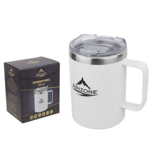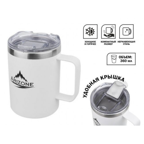 Термокружка, 360 мл, нержавеющая сталь, белая, ARIZONE