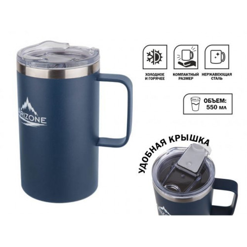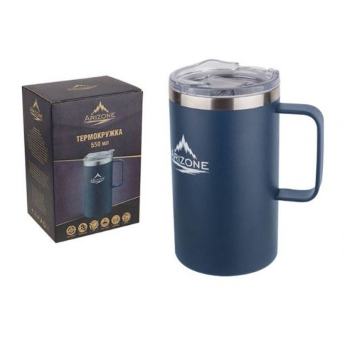 Термокружка, 550 мл, нержавеющая сталь, синяя, ARIZONE