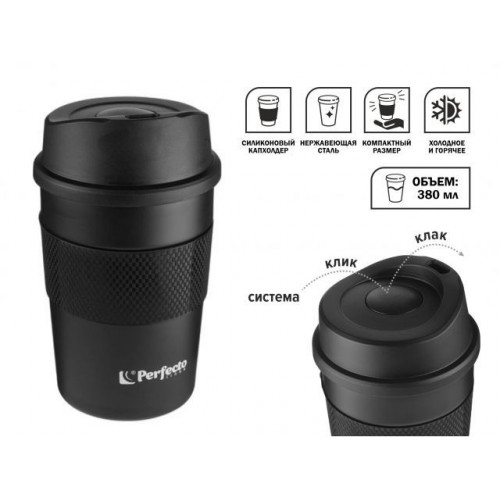 Термокружка для кофе, 380 мл, нержавеющая сталь, black, PERFECTO LINEA