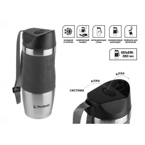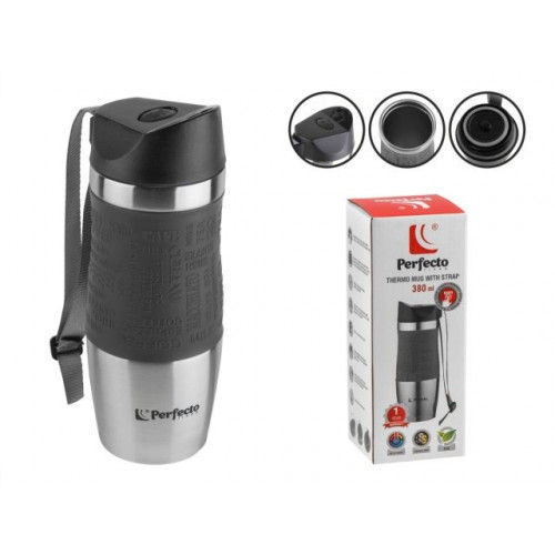 Термокружка с ремешком, 380 мл, нержавеющая сталь, black, PERFECTO LINEA