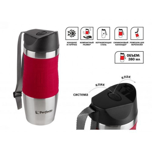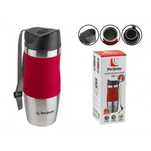 Термокружка с ремешком, 380 мл, нержавеющая сталь, red, PERFECTO LINEA