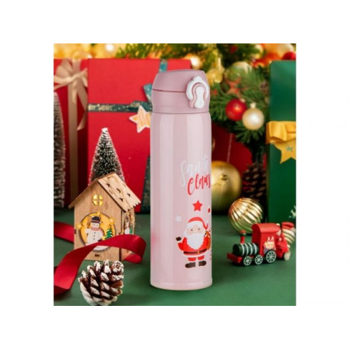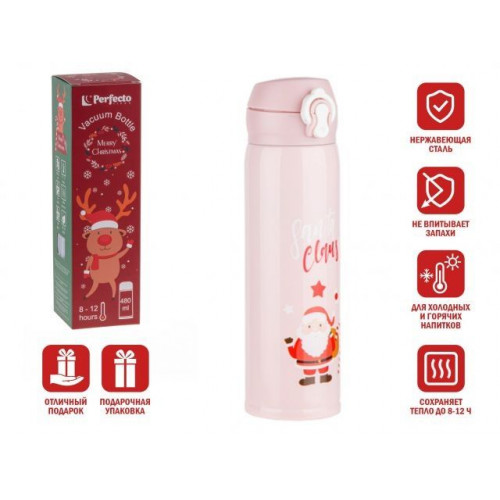 Термос, 480 мл, нержавеющая сталь, MERRY CHRISTMAS, розовый, PERFECTO LINEA