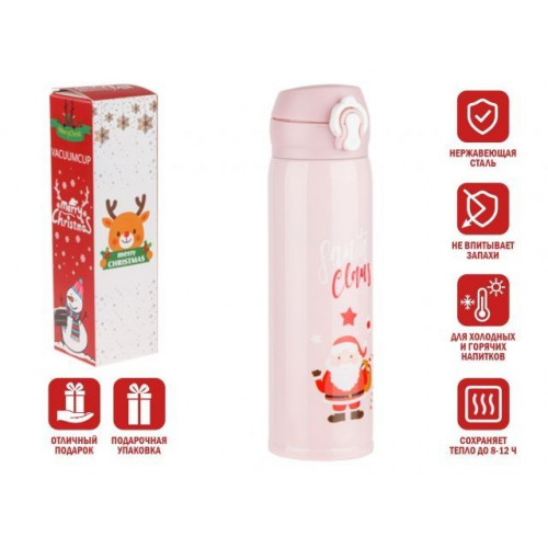 Термос, 500 мл, нержавеющая сталь, MERRY CHRISTMAS, розовый, PERFECTO LINEA
